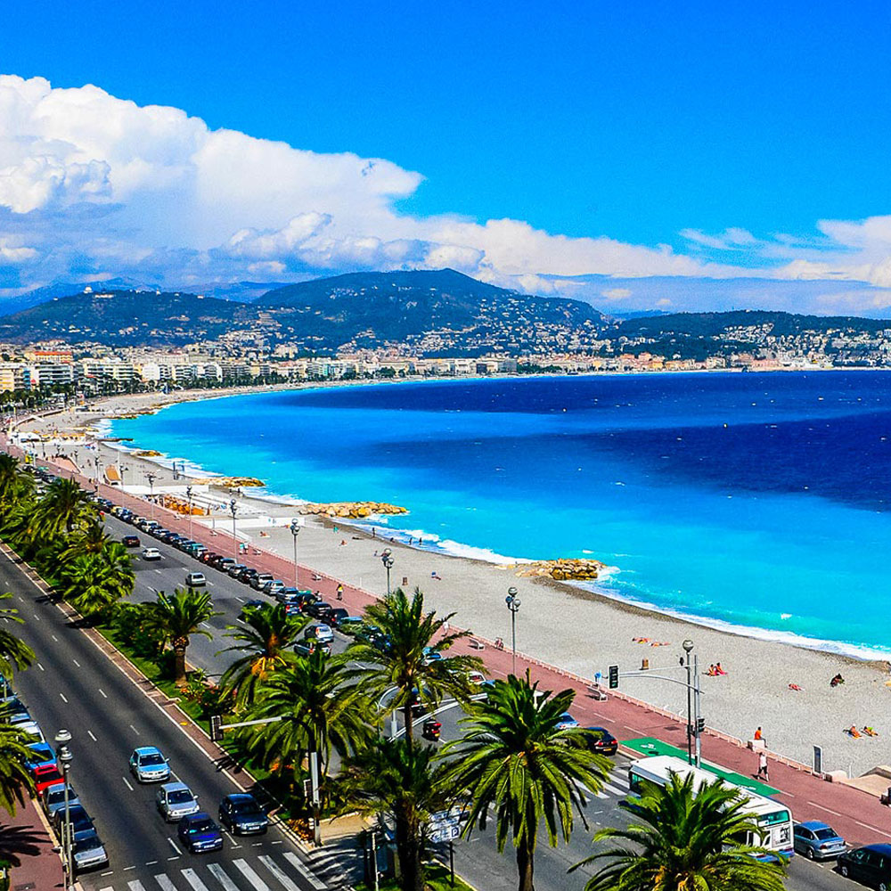 Des hauteurs de la ville, au mont Boron, à Cimiez, à Saint-Antoine-de-Ginestière, on descend vers la mer à travers des boulevards ensoleillés et verdoyants jusqu’aux quartiers du centre-ville et leurs grands axes, l’avenue Jean-Médecin et ses commerces, la promenade du Paillon…